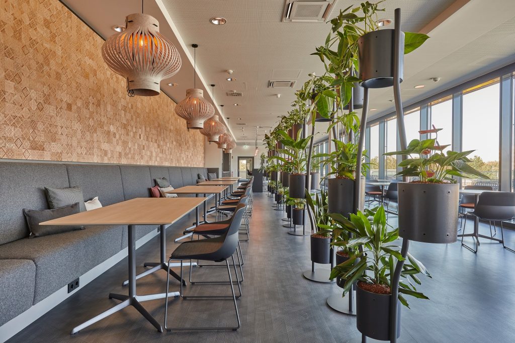Die großzügige Kantine: ein Sonnendurchfluteter Raum der Begegnung.